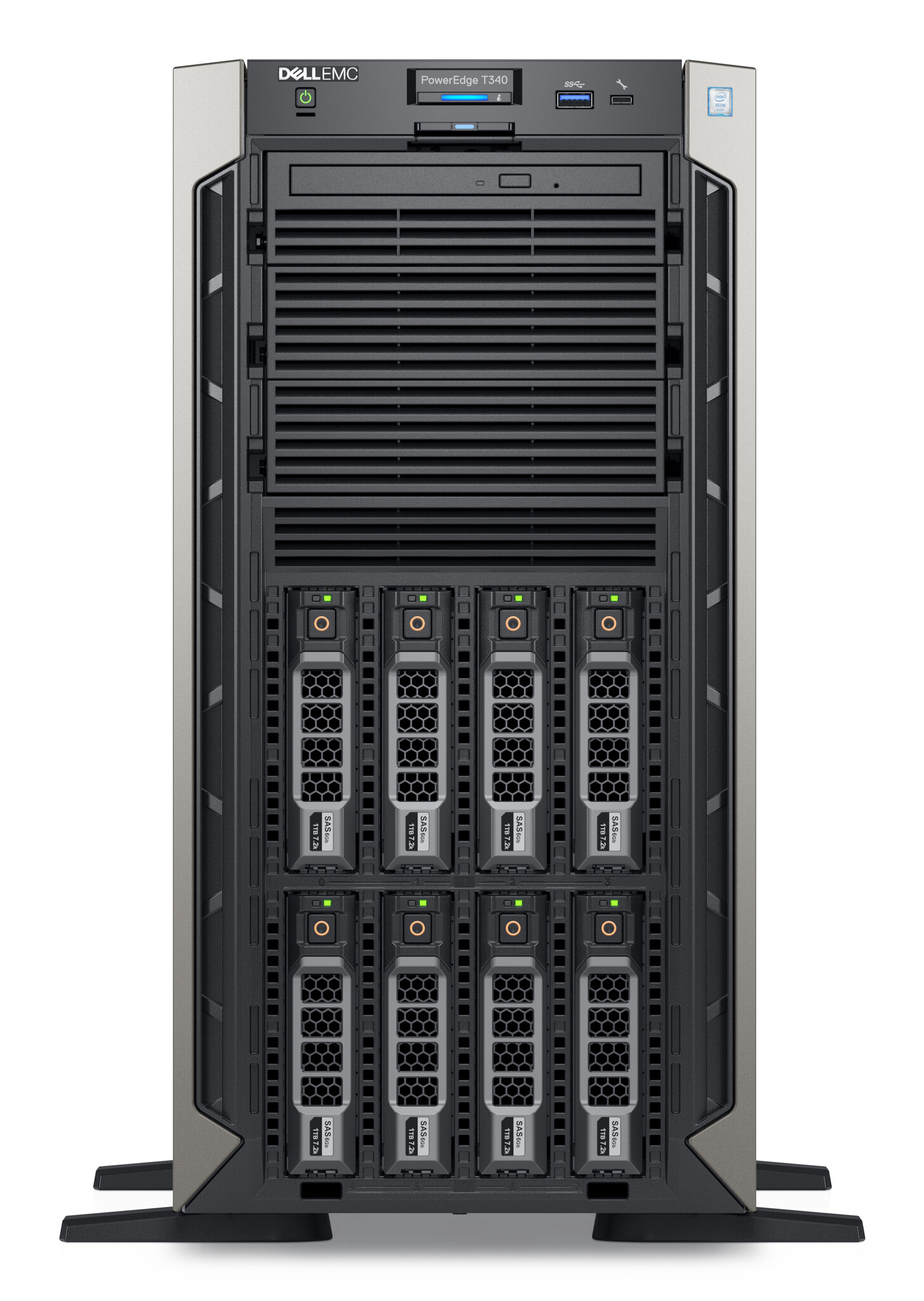 DELL PowerEdge T340. Famiglia processore: Intel Xeon E, Frequenza del processore: 3,4 GHz, Modello del processore: E-2224. RAM installata: 16 GB, Tipo di RAM: DDR4-SDRAM, Struttura memoria: 1 x 16 GB. Capacità totale di archiviazione: 480 GB. Collegamento ethernet LAN. Tipo drive ottico: DVD±RW. Alimentazione: 495 W. Tipo di case: Tower