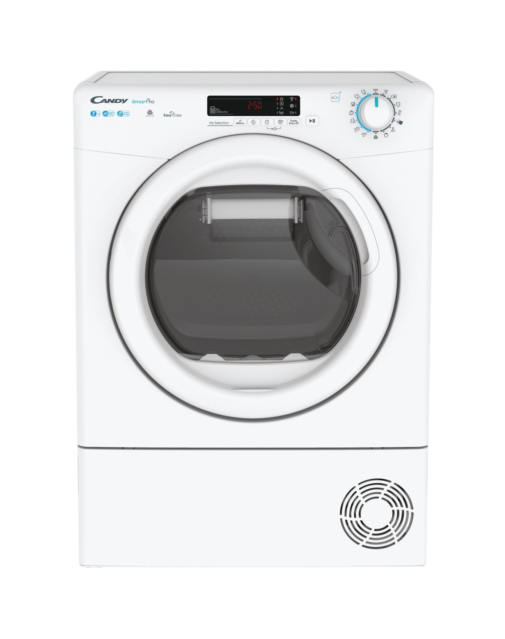 Candy Smart Pro CSO4H7A2DE-S. Posizionamento dell'apparecchio: Libera installazione, Tipo di carica: Caricamento frontale, Sistema di asciugatura: Pompa di calore. Capacità cestello: 7 kg, Programmi di asciugatura: Camicia/maglietta, Cotone, Quotidiano, Dark clothes, Eco, Risciacquo, Ferro da stiro a secco,..., Ciclo: 125 min. Partenza ritardata: 24 h, Applicazioni per il controllo supportate: hOn... Mostra tutto