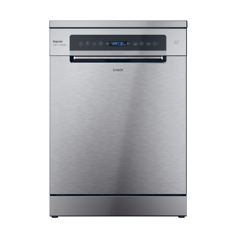 Candy RapidÓ CF 6B4S1PX. Posizionamento dell'apparecchio: Libera installazione, Dimensione: Dimensione massima (60 cm), Colore della porta: Acciaio inox. Numero di coperti: 16 coperti, Classe emissione rumore: B, Emissione acustica: 44 dB. Applicazioni per il controllo supportate: hOn. Classe efficienza energetica: B, Consumo di acqua per ciclo: 9,5 L, Consumo energetico per 100 cicli: 66 kWh. Lar... Mostra tutto