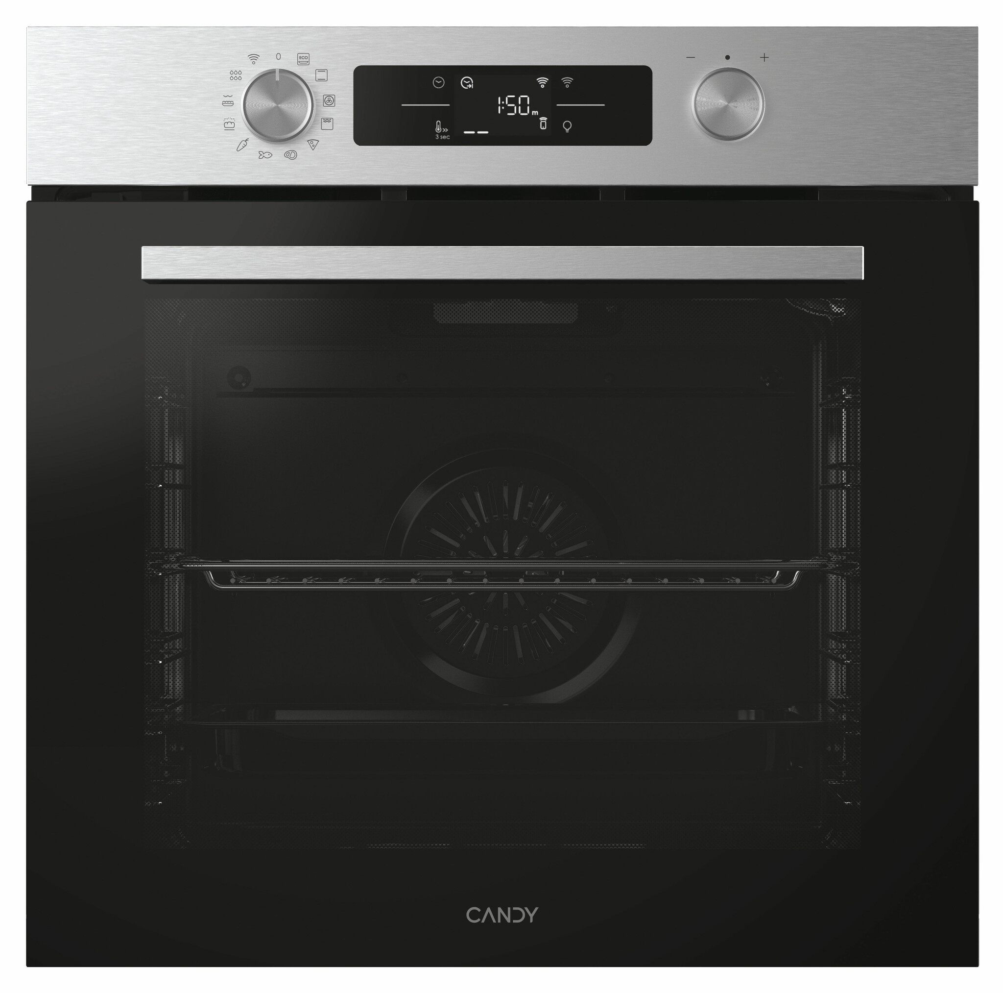 Candy CA6 N3B3HTX. Dimensione del forno: Largo, Tipo di forno: Forno elettrico, Capacità interna forno totale: 78 L. Posizionamento dell'apparecchio: Da incasso, Colore del prodotto: Nero, Acciaio inox, Tipo di controllo: Manopola, Touch. Tipo di timer: Digitale, Applicazioni per il controllo supportate: hOn. Consumo energetico (convenzionale): 0,97 kWh, Consumo energetico (convezione forzata): 0,... Mostra tutto