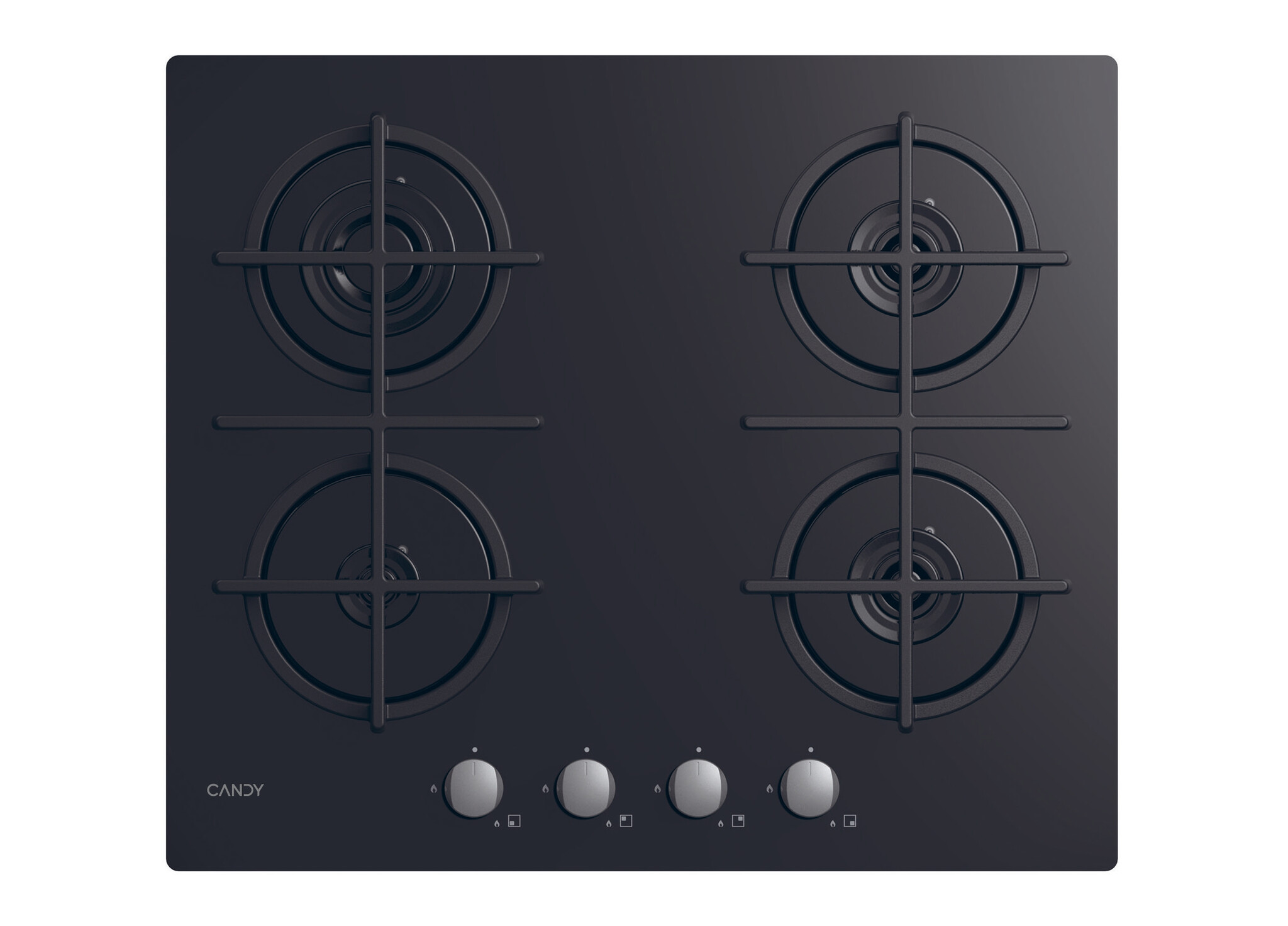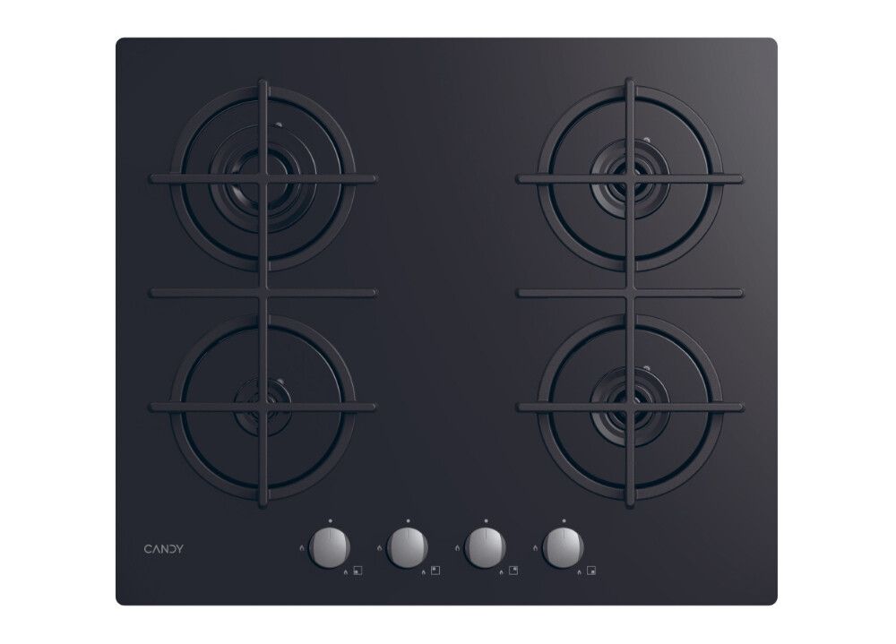 Candy CVG6B. Colore del prodotto: Nero, Posizionamento dell'apparecchio: Da incasso, Dimensione della larghezza del piano cottura: 59 cm. Bruciatore medio: 175 W. Tipo di controllo: Manopola, Posizione di controllo: Frontale superiore. Tensione di ingresso AC: 220 V, Tipo di gas: NG + GPL (Butano). Larghezza: 595 mm, Profondità: 510 mm, Altezza: 95 mm