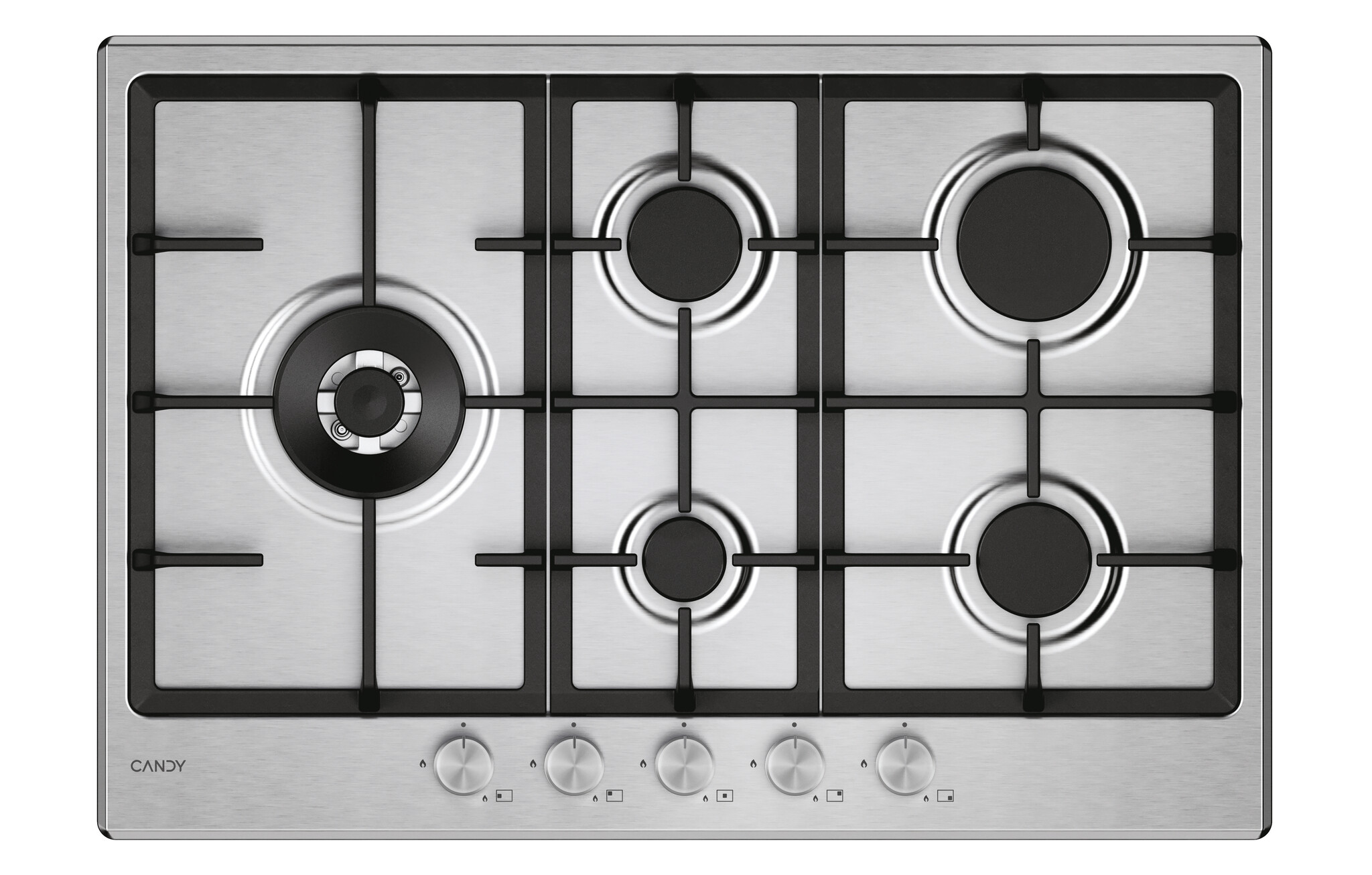Candy CHG7WL4WTX. Colore del prodotto: Acciaio inox, Posizionamento dell'apparecchio: Da incasso, Dimensione della larghezza del piano cottura: 74.5 cm. Tipo di controllo: Manopola, Posizione di controllo: Front / Top front. Tensione di ingresso AC: 220-240 V. Applicazioni per il controllo supportate: hOn. Tecnologie Candy (cottura): hOn App