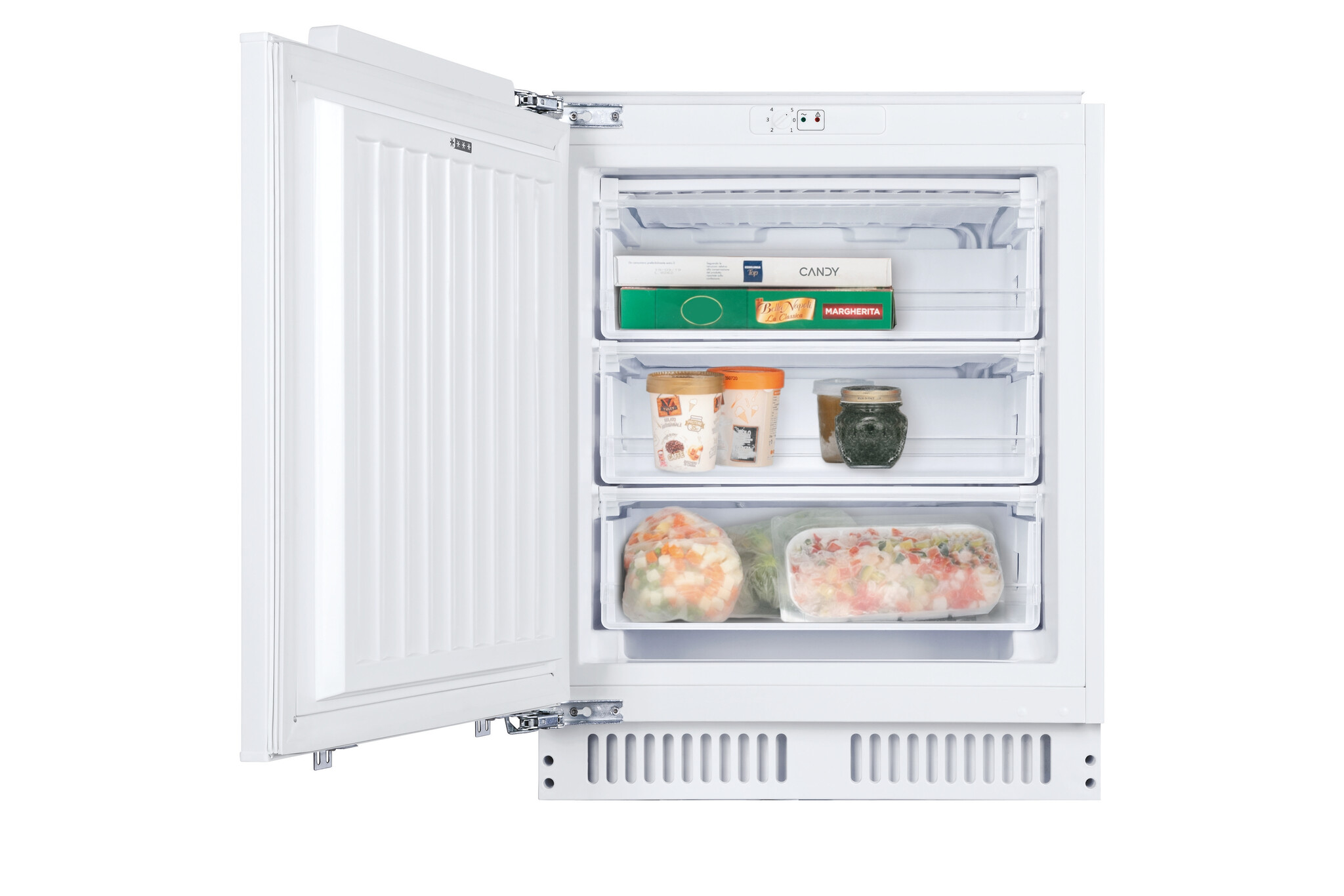 Candy CUS68EW. Capacità netta congelatore: 95 L, Classe climatica: N-ST, Capacità di congelamento: 4,5 kg/24h, Autonomia senza energia elettrica: 15 h, Emissione acustica: 39 dB, Punteggio: 4*. Cerniera porta: Sinistra. Classe efficienza energetica: E, Consumo energetico annuo: 158 kWh. Colore del prodotto: Bianco