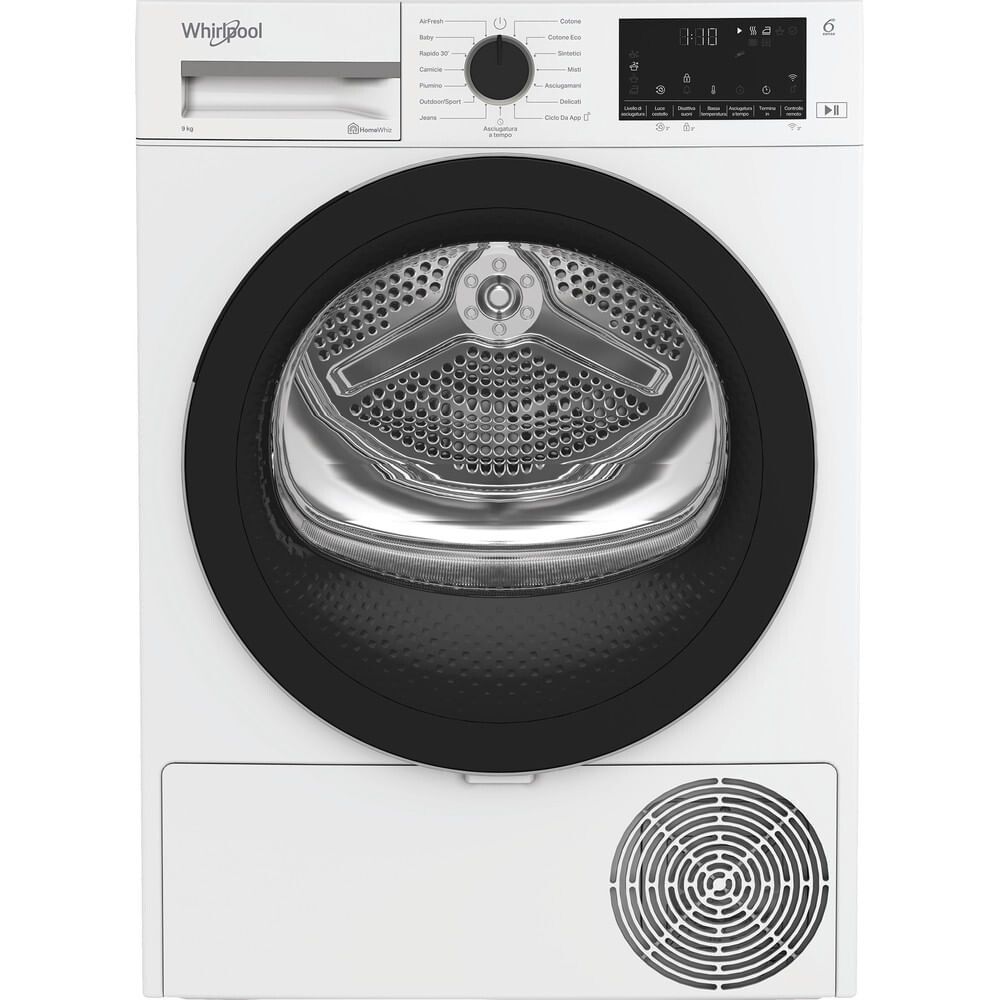 Whirlpool C WD 93M WBS IT, Capacità 9kg, classe D, colore White, Display digitale XL, Wi-Fi. Posizionamento dell'apparecchio: Libera installazione, Tipo di carica: Caricamento frontale, Sistema di asciugatura: Pompa di calore. Capacità cestello: 9 kg, Condensation efficiency class (old): B, Classe di efficienza della condensazione: B. Partenza ritardata: 24 h, Avvio ritardato (min): 1 h. Classe ef... Mostra tutto