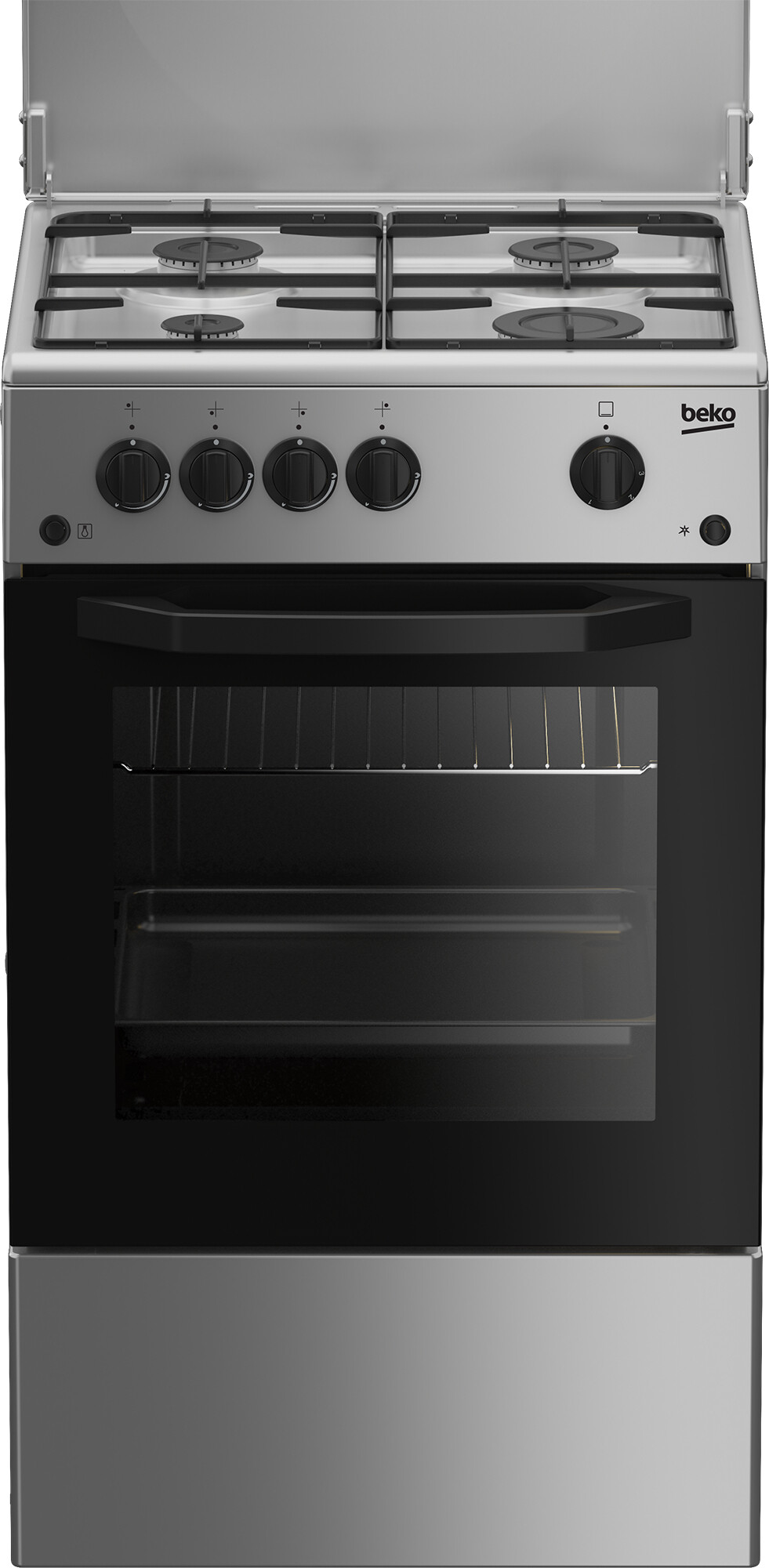 Beko CSG 42011 FS: Cucina a Gas, 50x50 cm. Tipo di prodotto: Cucina, Colore del prodotto: Argento, Tipo di controllo: Manopola. Tipo di piano cottura: Gas, Numero totale di fuochi: 4 Fornello(i), Tipo di gas: Gas naturale (NG). Sorgente di alimentazione del forno: Gas, Posizione del forno: Fondo, Apertura della porta del forno: Apertura dall'alto in basso. Potenza aggregata (elettrica): 16 W, Pote... Mostra tutto