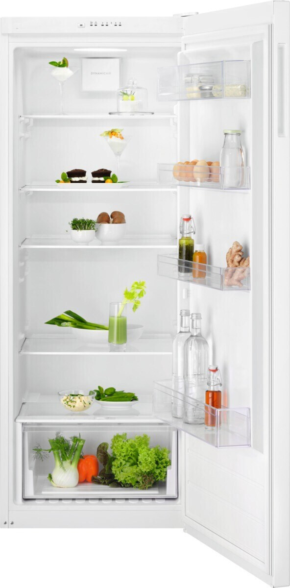 Electrolux FRIGORIFERO ARMADIO FRIGORIFERO VENTILATO CLASSE E LRB1DE33W. Capacità netta frigorifero: 309 L, Classe climatica: SN-T, Emissione acustica: 38 dB. Numero di ripiani frigorifero: 4, Numero di cassetti per verdura: 1. Tipo di lampada: LED. Cerniera porta: Destra. Consumo energetico annuo: 112 kWh, Classe efficienza energetica: E. Peso: 54,3 kg. Colore del prodotto: Bianco
