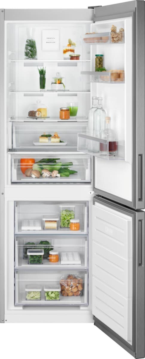 Electrolux FRIGORIFERO COMBINATO MULTIFLOW CLASSE E LNT6ME32U2. Capacità netta totale: 330 L. Cerniera porta: Destra. Classe climatica: SN-T, Emissione acustica: 38 dB. Capacità netta frigorifero: 230 L, No Frost (frigorifero), Sistema Multi-Airflow (frigorifero), Luce interna. Capacità netta congelatore: 101 L, Capacità di congelamento: 8 kg/24h, No Frost (congelatore). Compartimento zona fresca.... Mostra tutto