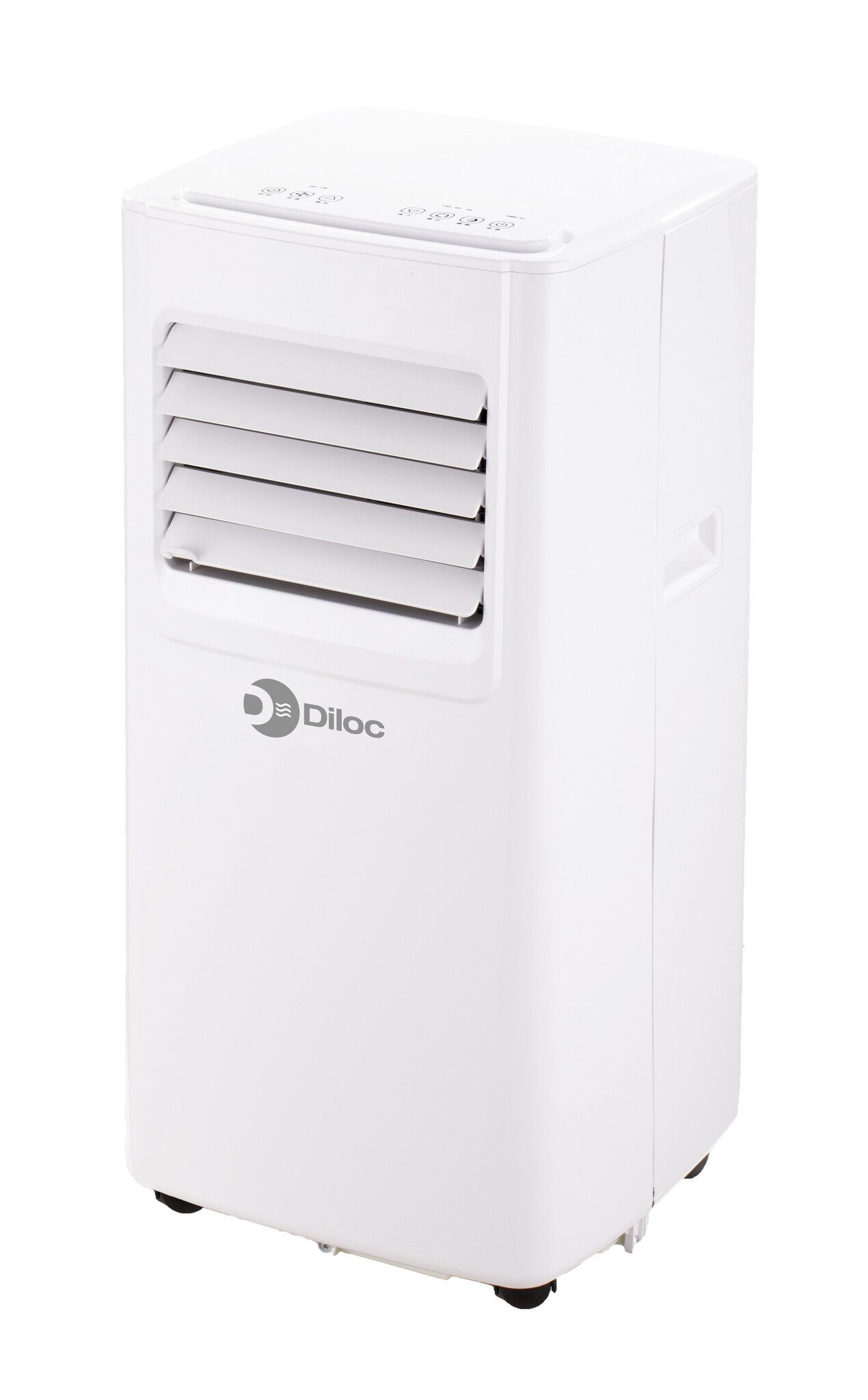 Diloc D.IGLU9000FC. Tipo: Condizionatore portatile monoblocco, Funzioni condizionatore: Raffreddamento, Deumidificazione, Riscaldamento, Capacità di raffreddamento (max): 9000 BTU/h. Classe di efficienza energetica (raffreddamento): A, Carico di progetto (raffreddamento): 2,64 kW, Classe efficienza energetica (riscaldamento): A. Colore del prodotto: Bianco, Tipo di controllo: Touch, Wireless. Larg... Mostra tutto