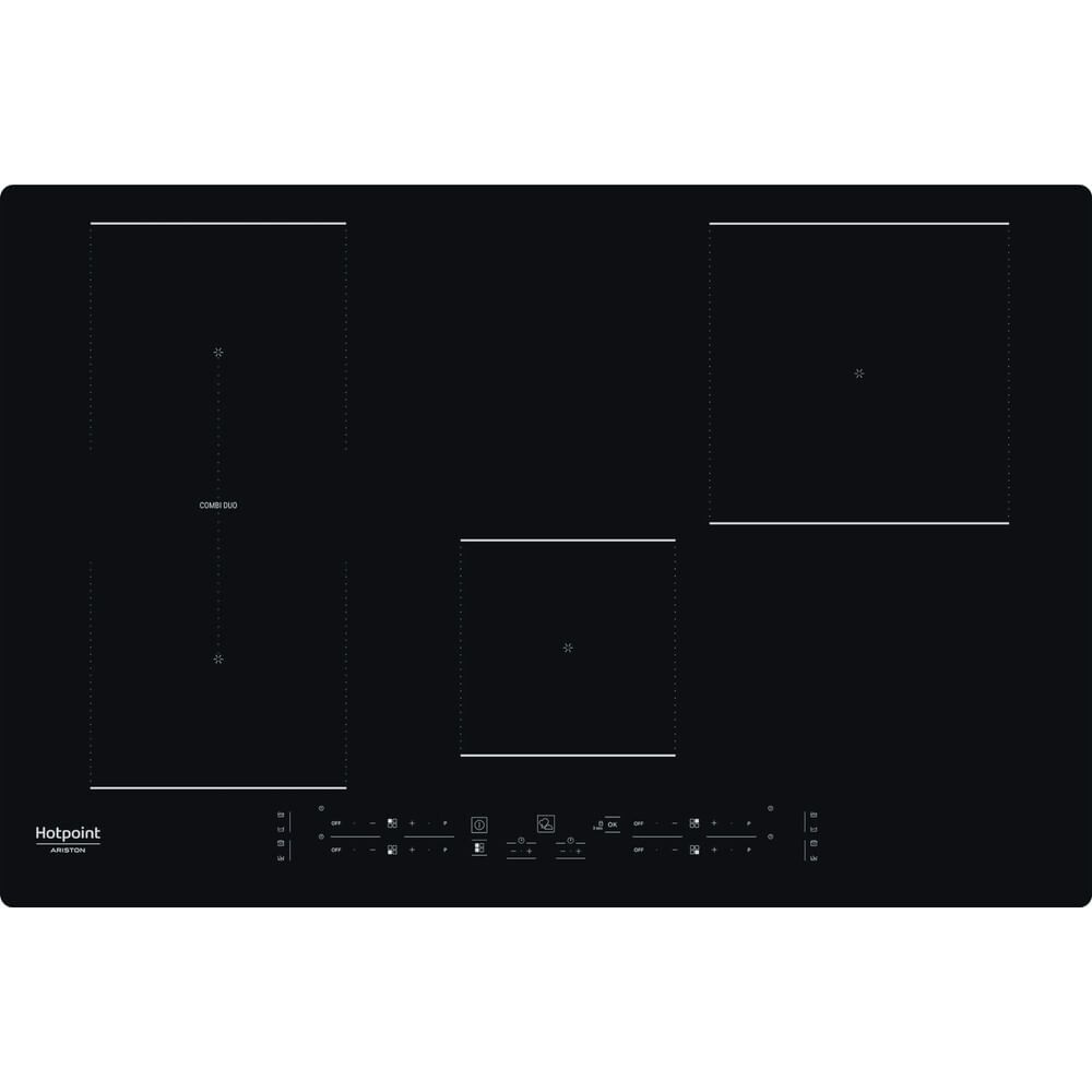 Hotpoint Ariston Piano cottura a induzione HB 0577B NE. Colore del prodotto: Nero, Posizionamento dell'apparecchio: Da incasso, Dimensione della larghezza del piano cottura: 77 cm. Tipo di controllo: Touch, Posizione di controllo: Frontale, Tipo di timer: Digitale. Larghezza: 770 mm, Profondità: 510 mm, Altezza: 54 mm. Larghezza imballo: 600 mm, Profondità imballo: 120 mm, Altezza imballo: 850 mm.... Mostra tutto