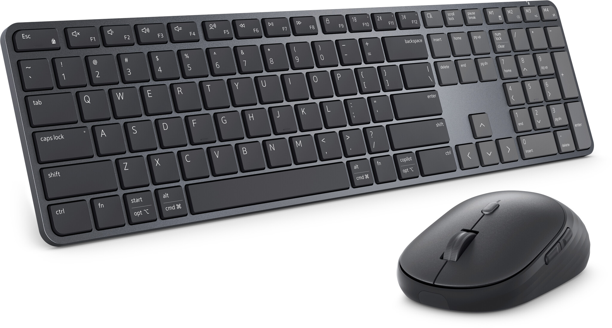 DELL Pro 7 Slim KM726. Fattore di forma tastiera: Full-size (100%). Stile tastiera: Dritto. Tecnologia di connessione: Wireless, Interfaccia dispositivo: RF senza fili + Bluetooth, Interruttore a chiave per tastiera: Tasto con meccanismo a forbici, Struttura tastiera: QWERTY, Utilizzo raccomandato: Casa/ufficio. Colore del prodotto: Nero. Mouse incluso