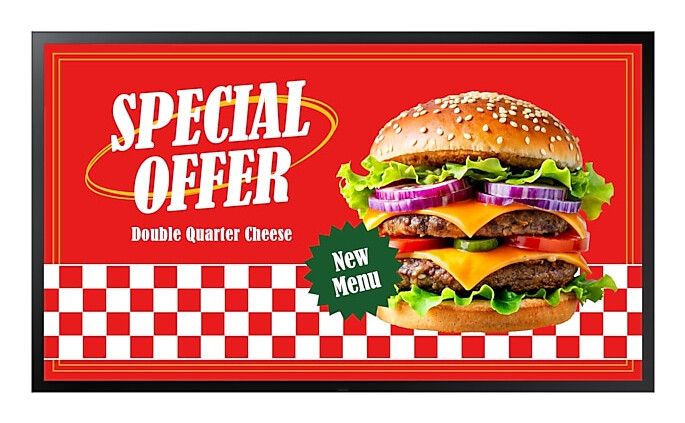 Samsung OH55DX. Design del prodotto: Pannello piatto per segnaletica digitale. Dimensioni diagonale schermo: 139,7 cm (55"), Tecnologia display: LCD, Risoluzione del display: 1920 x 1080 Pixel, Luminosità schermo: 3500 cd/m², Tipologia HD: Full HD. Wi-Fi. Ore di servizio (ore/giorni): 24/7. Sistema operativo incluso: Tizen. Colore del prodotto: Nero