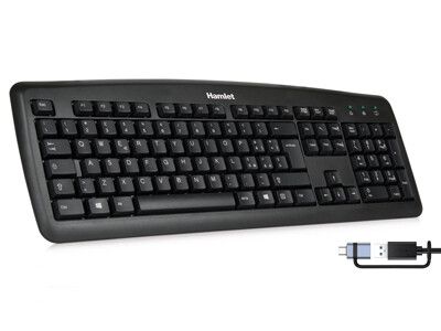 Hamlet XKKITA2-CX. Fattore di forma tastiera: Full-size (100%), Tecnologia di connessione: Cablato, Interfaccia dispositivo: USB, Interruttore a chiave per tastiera: Interruttore a chiave a membrana, Struttura tastiera: QWERTY, Numero pulsanti tastiera: 105. Lunghezza cavo: 1,8 m. Utilizzo raccomandato: Casa/ufficio. Colore del prodotto: Nero