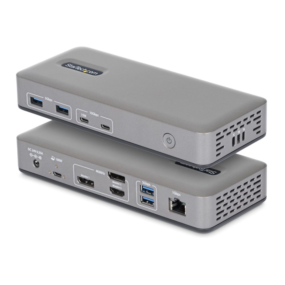 StarTech.com Docking Station USB-C Triple Monitor, DisplayPort / HDMI, 2x 4K 60Hz, 1x 4K 30Hz, Ricarica Laptop 100W, Ethernet 1GbE, Senza Driver, Dock Multi-Monitor, Windows. Tecnologia di connessione: Cablato, Interfaccia host: USB 3.2 Gen 2 (3.1 Gen 2) Type-C. Velocità trasferimento Ethernet LAN: 10,100,1000 Mbit/s. Colore del prodotto: Grigio, Velocità di trasferimento dati: 10 Gbit/s, Tipologi... Mostra tutto