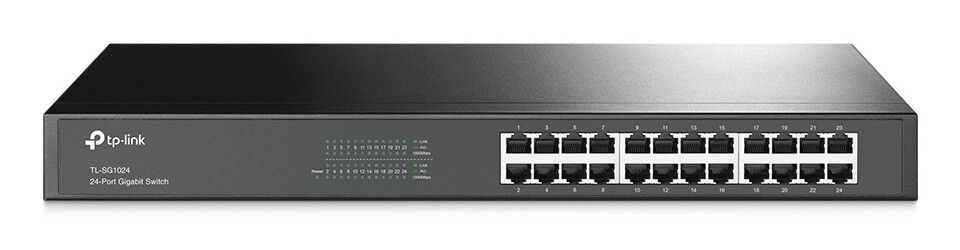 TP-Link TL-SG1024. Tipo interruttore: Non gestito, Livello del commutatore: L2. Tipo di porte RJ-45: Gigabit Ethernet (10/100/1000), Quantità di porte RJ-45: 24. Full duplex. Dimensioni tavola MAC: 8000 voci, Capacità di commutazione: 48 Gbit/s. Standard di rete: IEEE 802.1Q, IEEE 802.1p, IEEE 802.3, IEEE 802.3ab, IEEE 802.3u. Montaggio rack